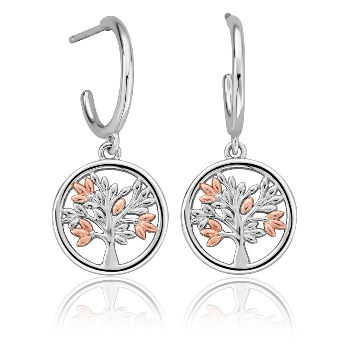 Add statement and sentiment to any outfit with these Clogau Tree of Life Drop Earrings. Featuring Sterling silver and 9ct rose gold, these Clogau earrings feature a cut out design. The Clogau Tree of Life collection represents growth and resurrection.