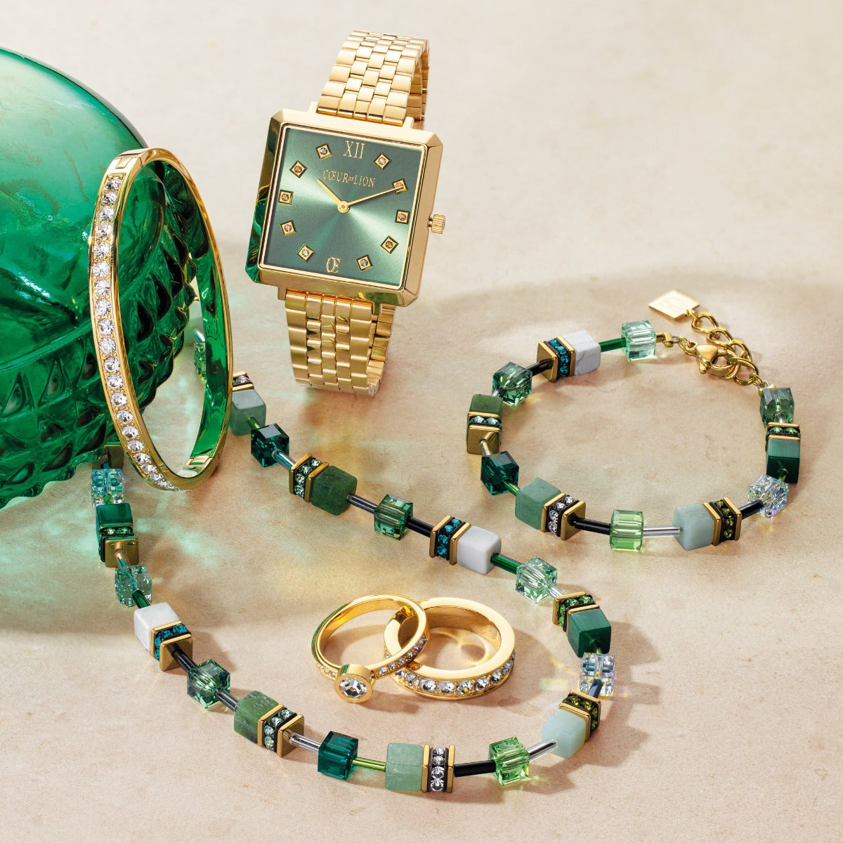 The Coeur De Lion GeoCUBE Bracelet - Iconic Precious Green and Gold will be delivered in the official branded packaging for this design, as supplied by the manufacturer. Depending on the design, this may include a box or pouch. For non-branded items, or where packaging is not available, Niche Jewellery packaging will be supplied.