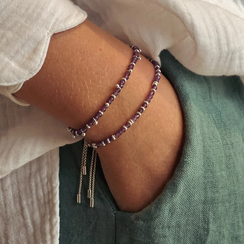 Boho Betty Mystical Amethyst Gemstone Silver Slider Bracelet
