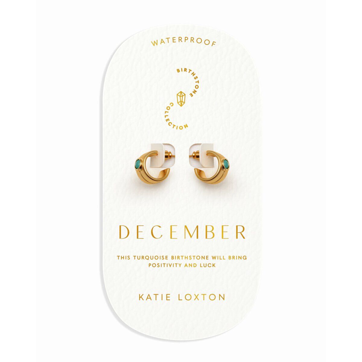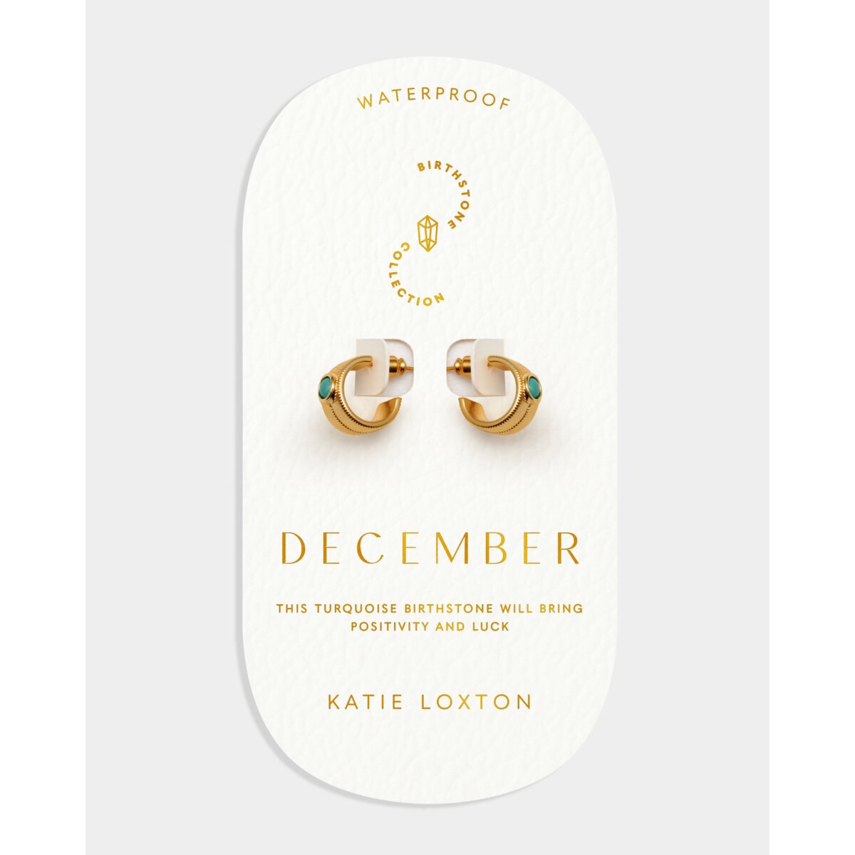 The Katie Loxton December Waterproof Gold Birthstone Hoop Earrings will be delivered in the official branded packaging for this design, as supplied by the manufacturer. Depending on the design, this may include a box or pouch. For non-branded items, or where packaging is not available, Niche Jewellery packaging will be supplied.