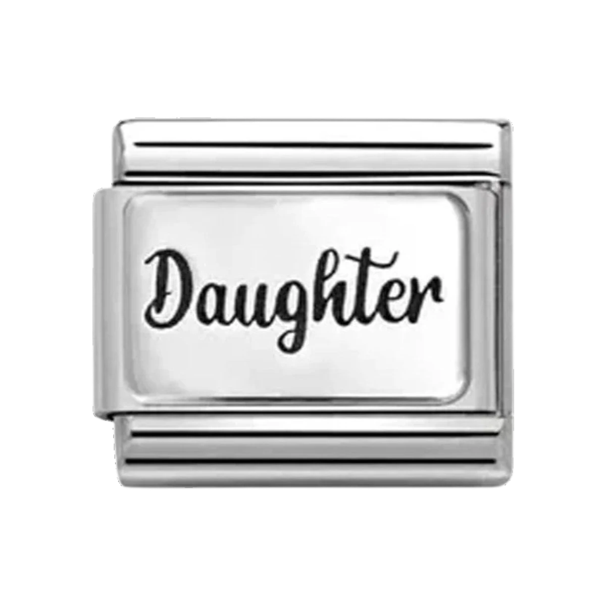 Add this Nomination Classic Silver Daughter Writing Charm to your Nomination charm bracelet to tell your story, or give as a thoughtful gift.