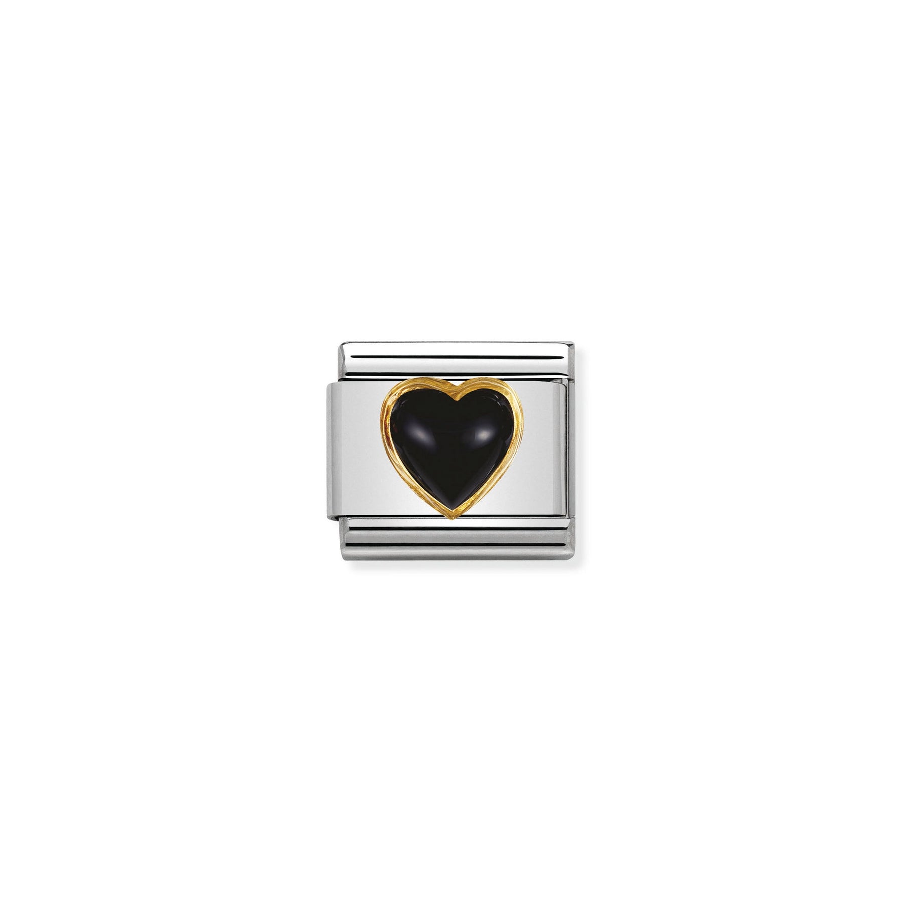 This subtle love Nomination tile charm is a beautiful gift for any loved one. With the symbolic love heart image featuring 18k Gold and black enamel.