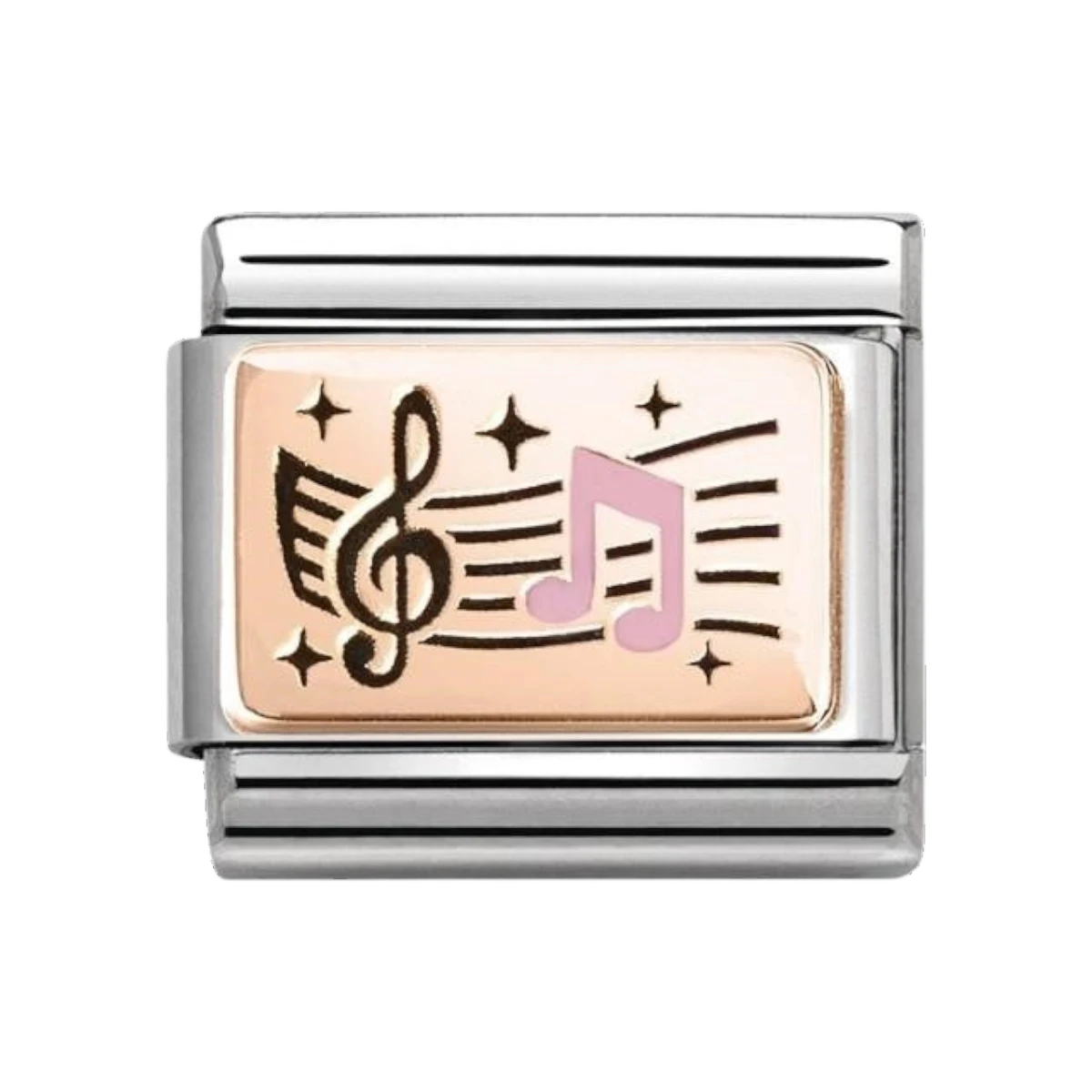Tell your story or give a meaningful gift with the Nomination Rose Gold Treble Clef and Notes Charm. Perfect for any music lover.