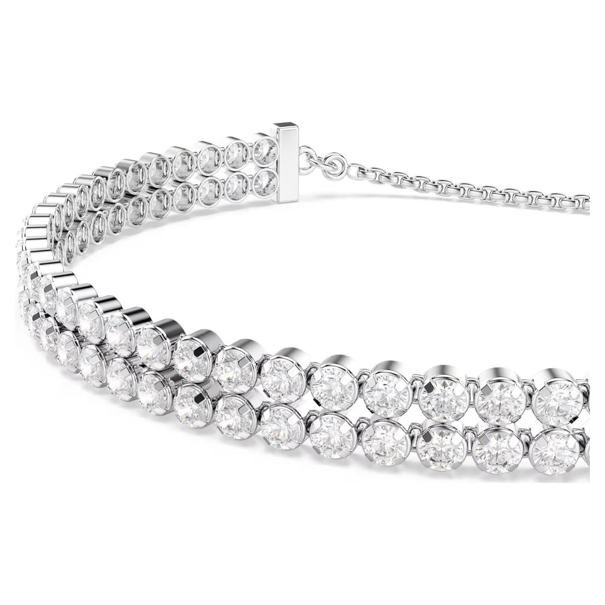 The Swarovski Double Tennis Slider Bracelet - White with Rhodium Plating will be delivered in the official branded packaging for this design, as supplied by the manufacturer. Depending on the design, this may include a box or pouch. For non-branded items, or where packaging is not available, Niche Jewellery packaging will be supplied.
