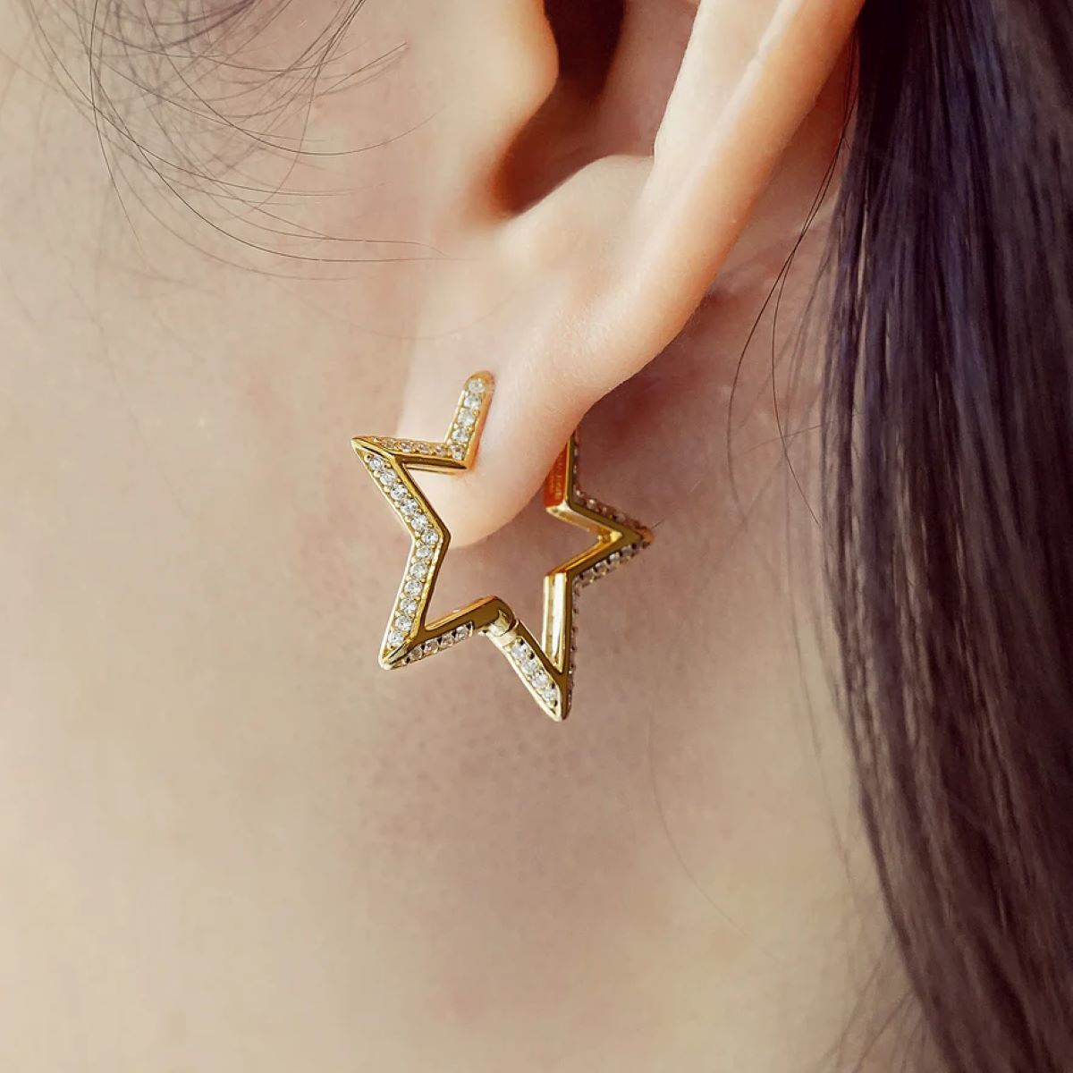 The Ania Haie Medium Star Pavé Hoop Gold Earrings will be delivered in the official branded packaging for this design, as supplied by the manufacturer. For non-branded items, Niche Jewellery packaging will be supplied.