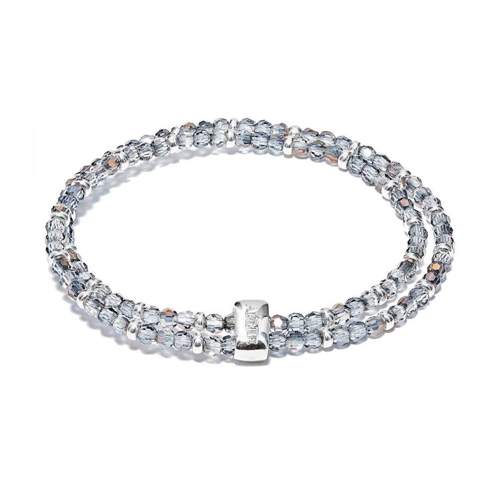 The Annie Haak Looped Mini Blisski Silver Bracelet features two delicate strands of Storm Preciosa crystals - in grey, iridescent stones that catch the light beautifully, accented with 925 Sterling Silver and loop details.