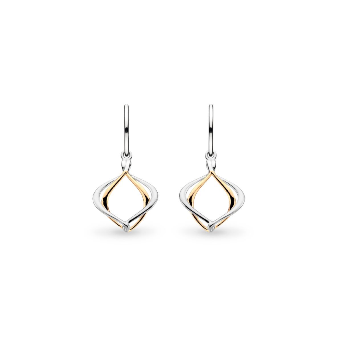 The Kit Heath Alicia Golden Petite Drop Earrings are meticulously crafted from Sterling Silver with Rhodium and 18ct Gold Plate finishes. Featuring a delicately entwined design that reflects light with movement.