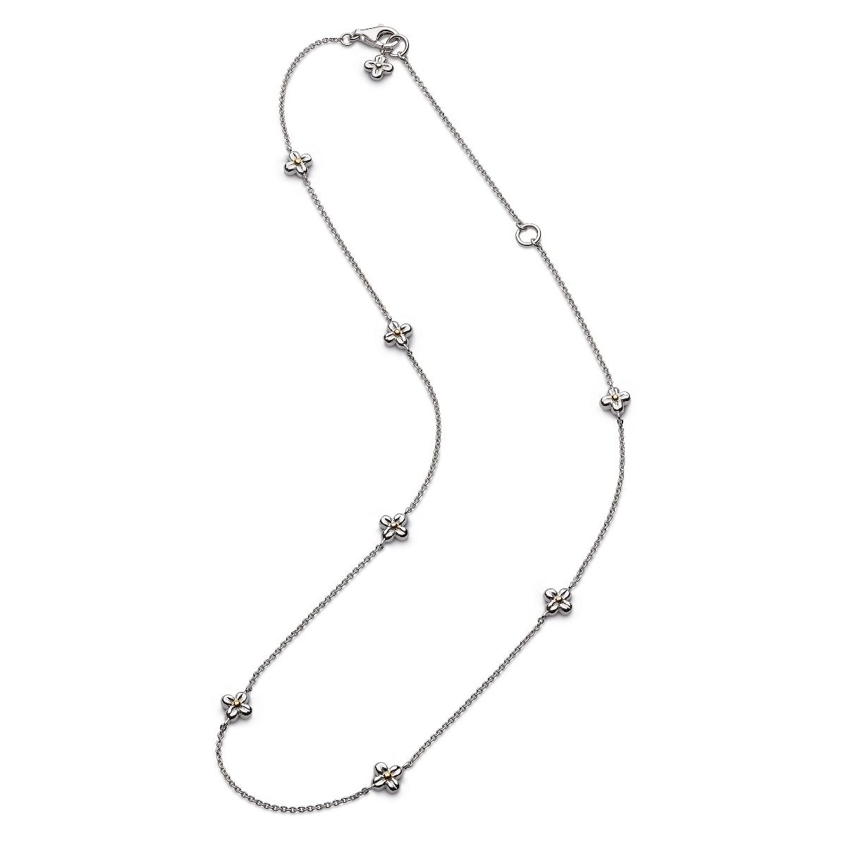 This sweet Honey Flower Kit Heath necklace is the perfect dainty everyday piece. Crafted from Sterling Silver, each tiny flower dotted along the chain is detailed with 18ct gold plate accents.