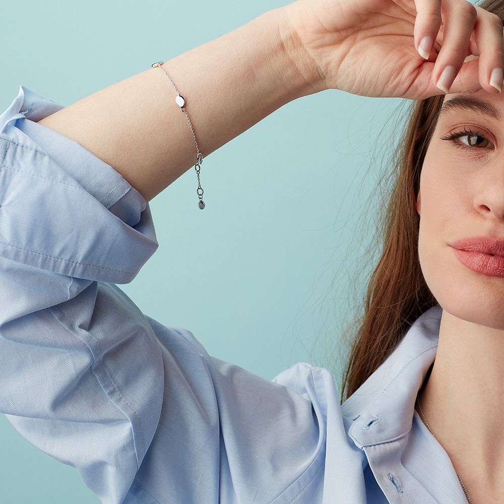 This coastal-inspired Kit Heath bracelet is organically designed with tactile silver pebbles interspersed along the fine chain. This adjustable bracelet is perfect for stacking with a mix of wristwear.