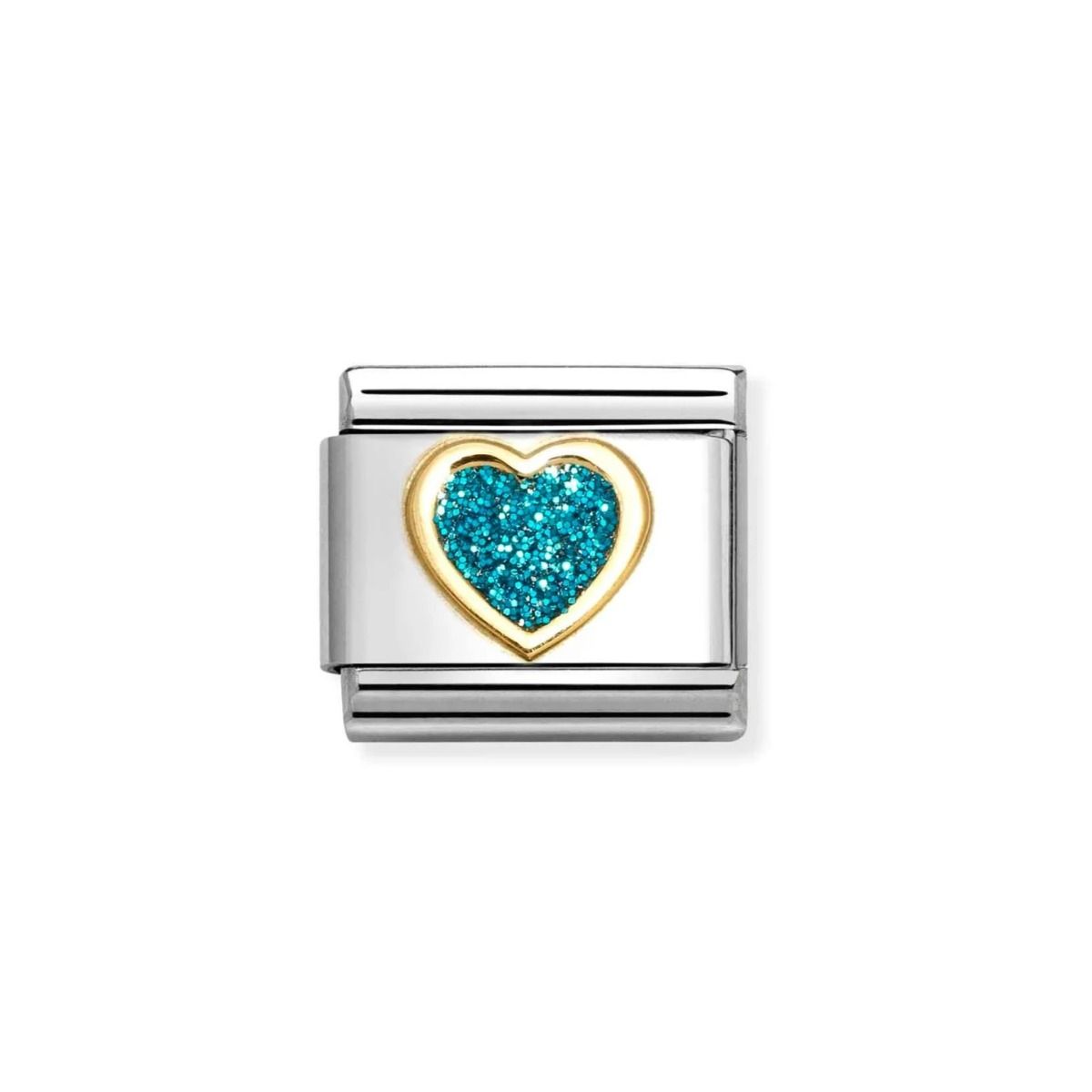 Style your charm bracelet or give a personalised gift with this Nomination Classic Glitter Charm Gold with Turquoise Heart.