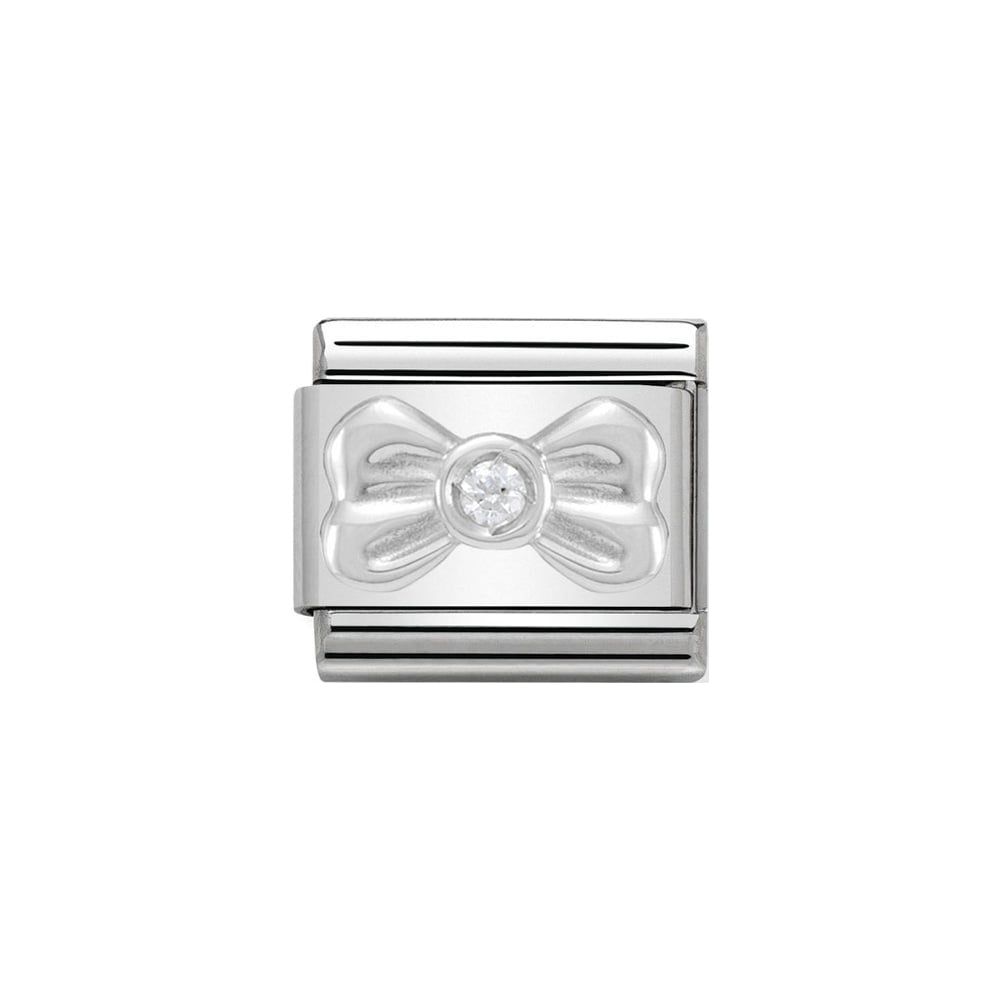 Personalise your Nomination Charm Bracelet by adding charms that express your interests, hobbies and treasured memories. Crafted in stainless steel and sterling silver, this charm featuring a white ribbon bow design, would be great for someone who is expecting a little girl.