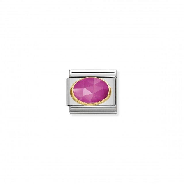 This beautiful Nomination charm has a stunning fuchsia faceted zirconia stone in the middle, the ideal statement piece for any Nomination bracelet.