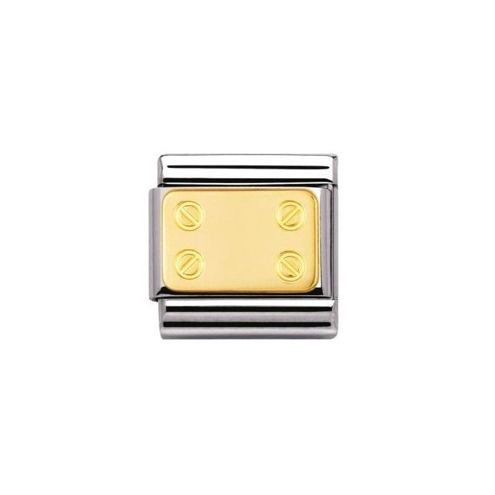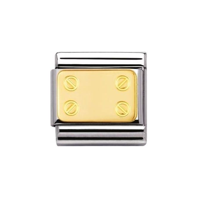 This 18k gold plated Nomination charm is has a four screw engraved detail. Crafted in stainless steel this will be the perfect addition to your Nomination bracelet.