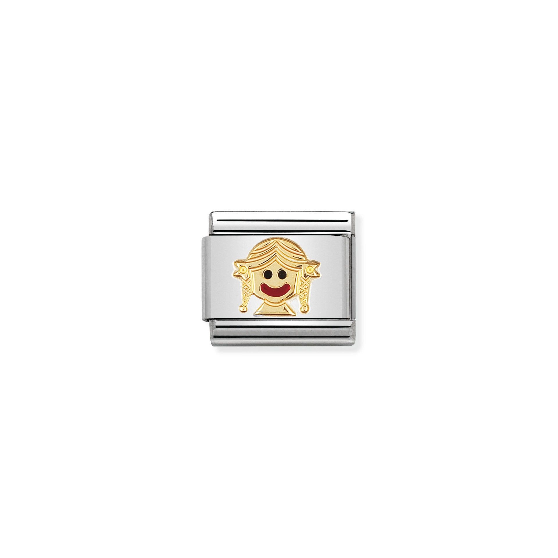A perfect addition to your little girls Composable Classic link Bracelet. A beautifully detailed design of a little girl with pigtails in gold.