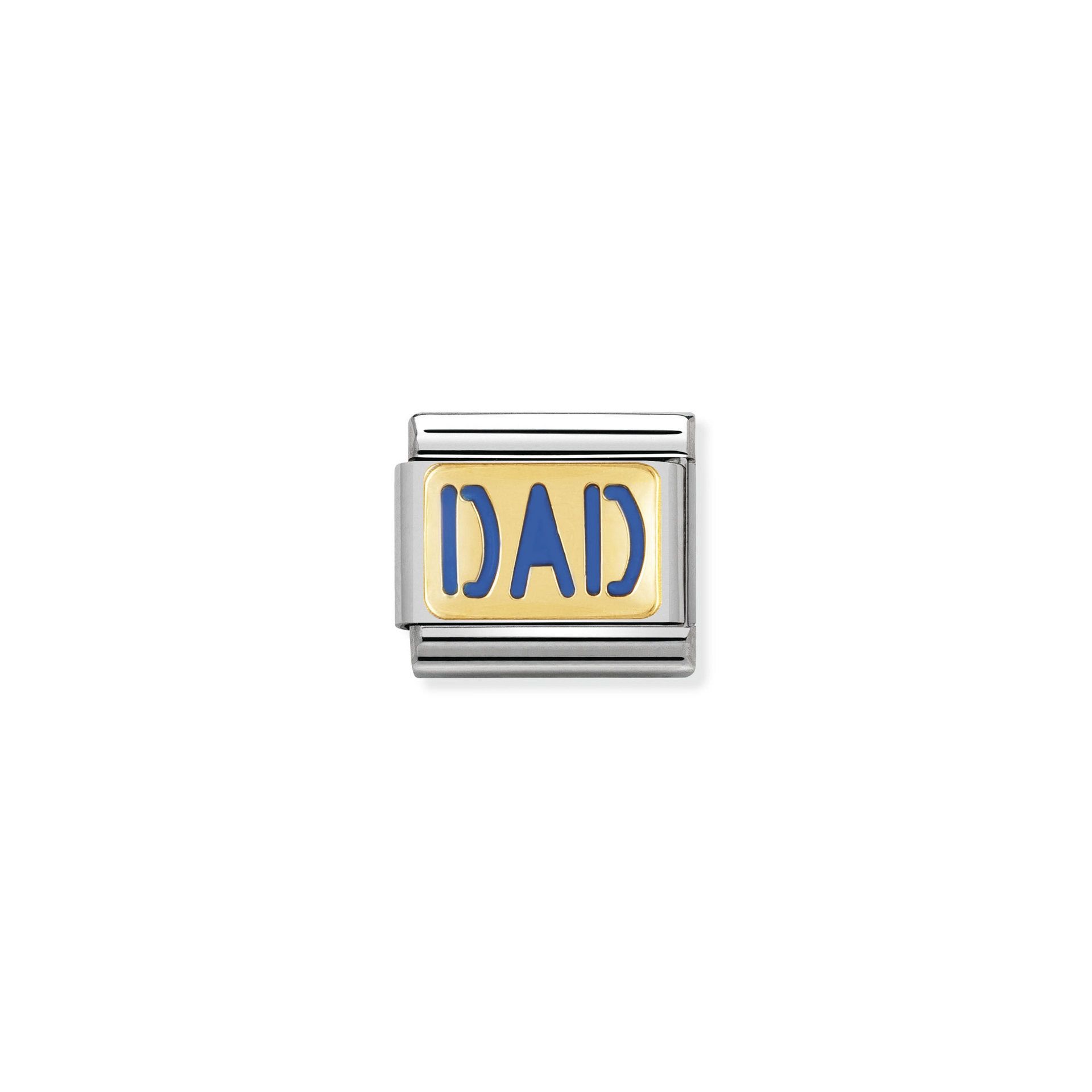 This Nomination tile charm features 18k gold lettering "DAD" with blue enamel adding a touch of personality to your bracelet.