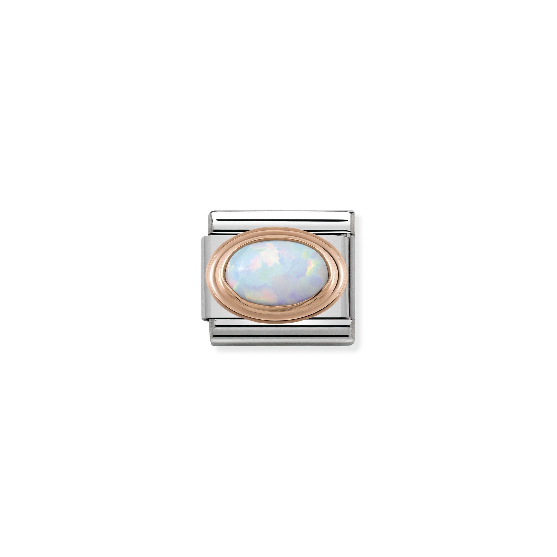 The Nomination Classic Rose Gold Oval Stones White Opal Charm will be delivered in the official branded packaging for this design, as supplied by the manufacturer. For non-branded items, Niche Jewellery packaging will be supplied.