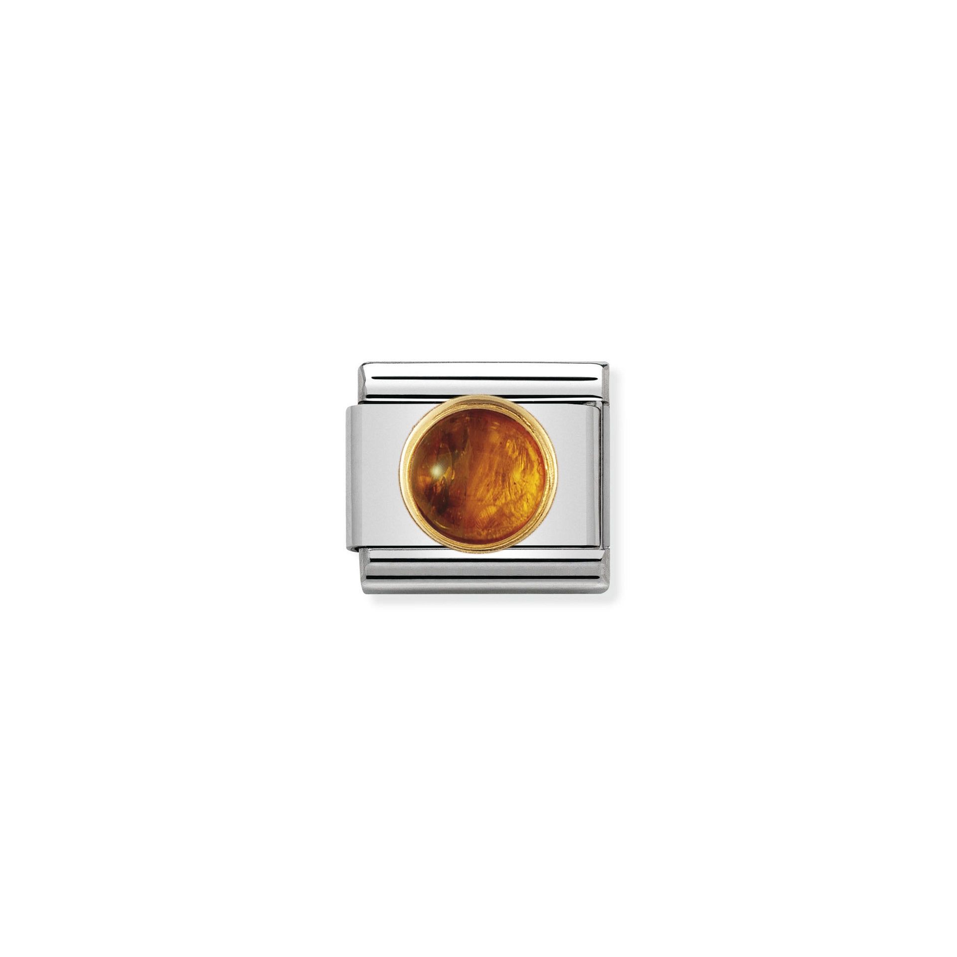 This Nomination tile charm is crafted with stainless steel and finished with 18k gold. The Amber centre piece will highlight your personality and unique style on your Nomination bracelet.