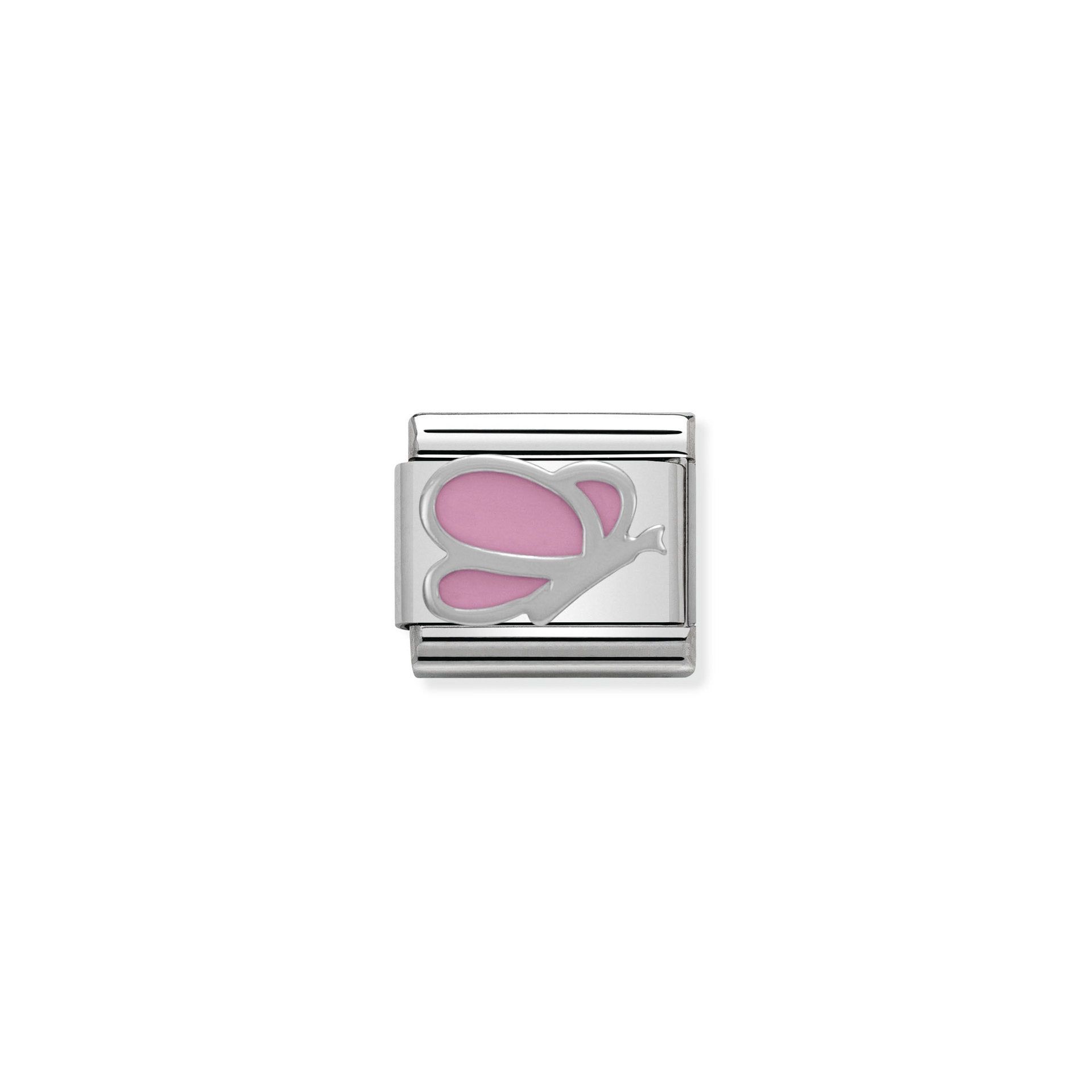 This Nomination tile charm is crafted with stainless steel. The Butterfly is beautiful with pink enamel and will highlight your personality and unique style on your Nomination bracelet.