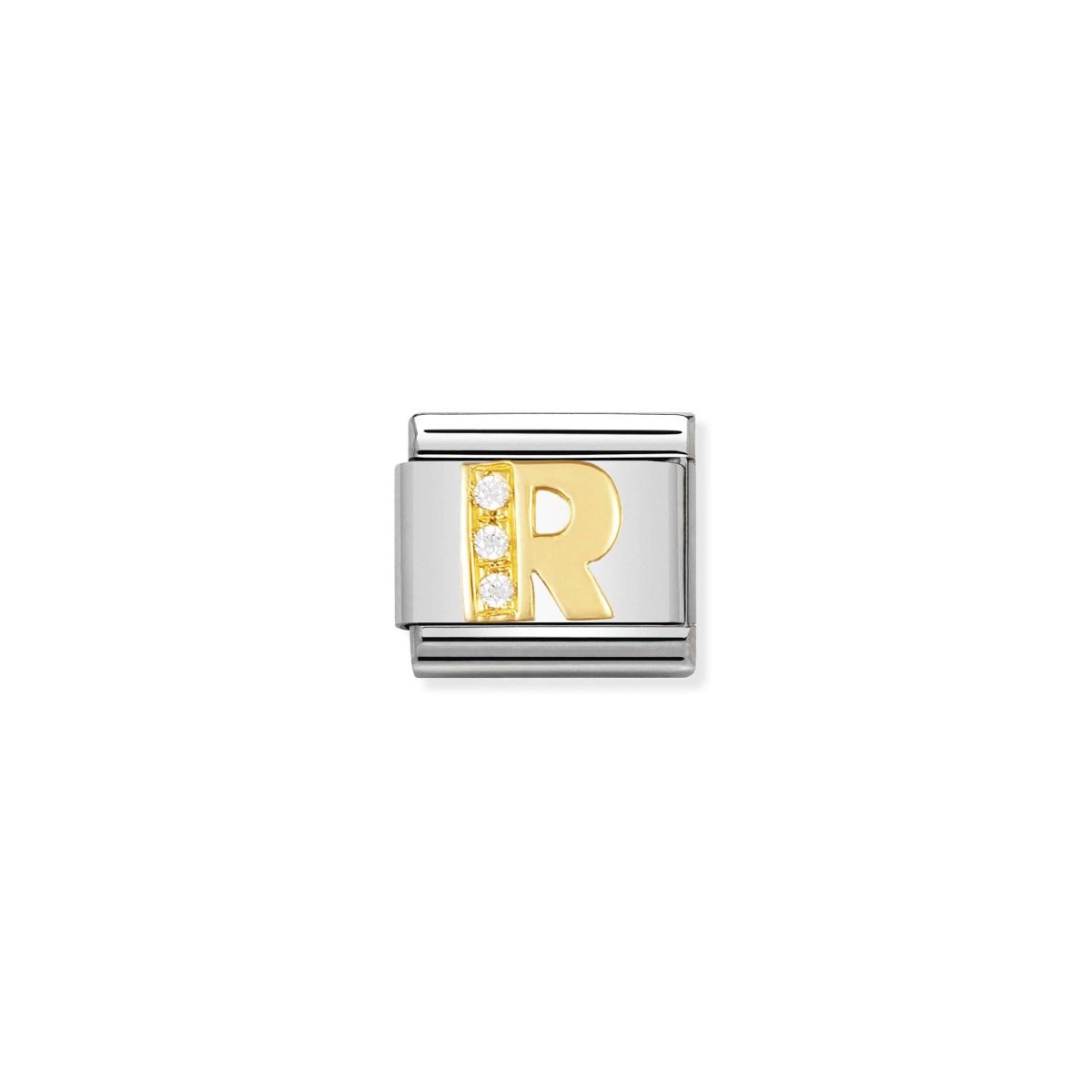 The Nomination Gold and Zirconia Classic Letter Charm - R will be delivered in the official branded packaging for this design, as supplied by the manufacturer. For non-branded items, Niche Jewellery packaging will be supplied.