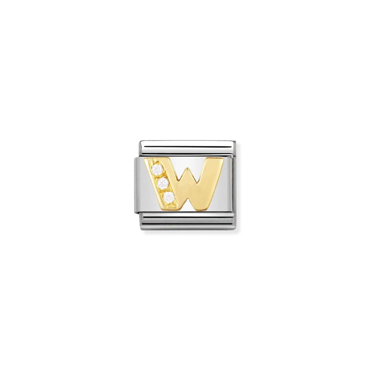 The Nomination Gold and Zirconia Classic Letter Charm - W will be delivered in the official branded packaging for this design, as supplied by the manufacturer. For non-branded items, Niche Jewellery packaging will be supplied.