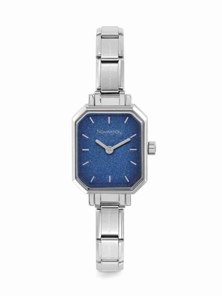 The perfect way to add a personalised touch to everyday. This Nomination Paris Blue Glitter Dial Charm Watch features a stainless steel strap which can be customised with your own selection of charms, and a glittering blue face - combining sentiment and sparkle.