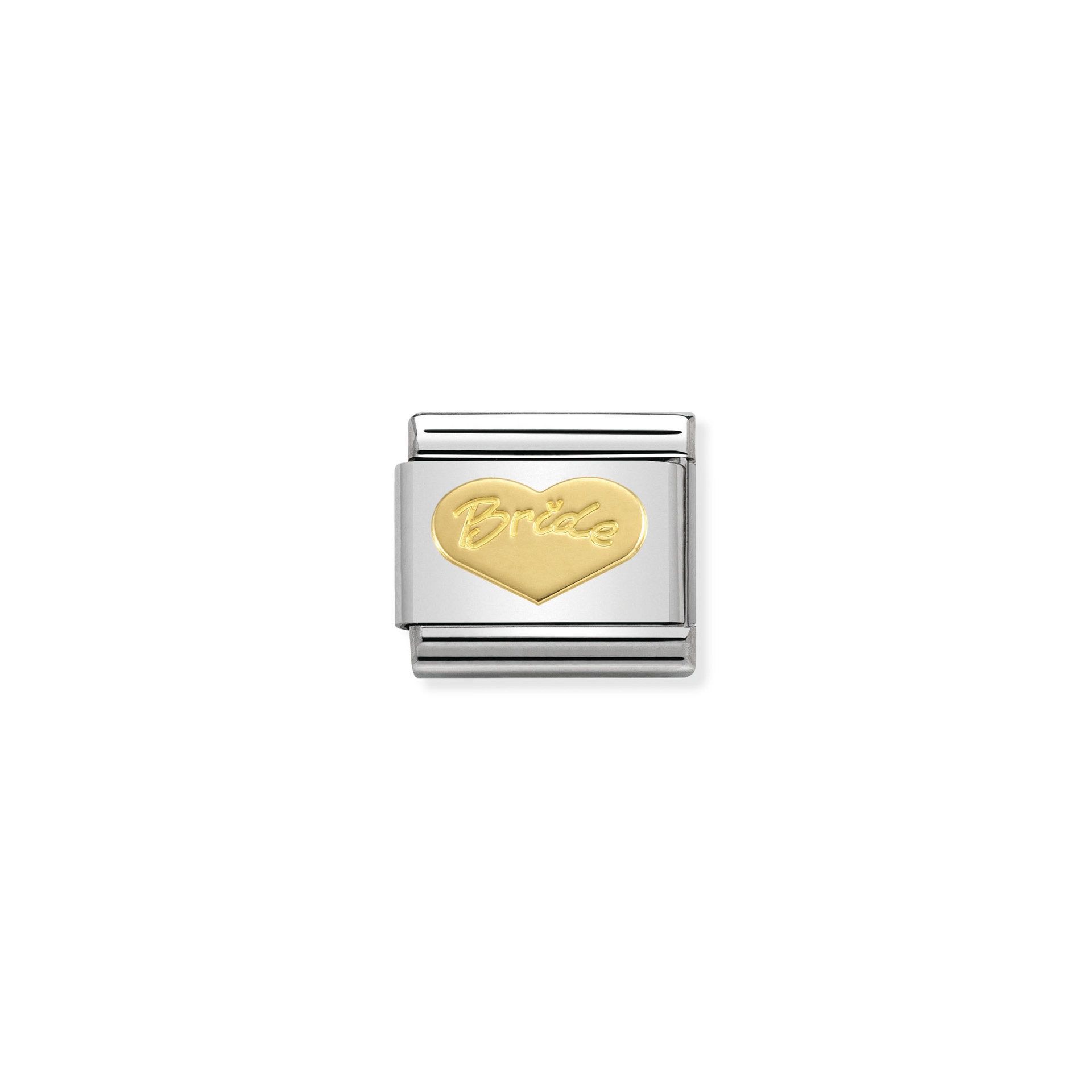 The Nomination Classic Gold Heart Engraved Bride Charm will be delivered in the official branded packaging for this design, as supplied by the manufacturer. For non-branded items, Niche Jewellery packaging will be supplied.