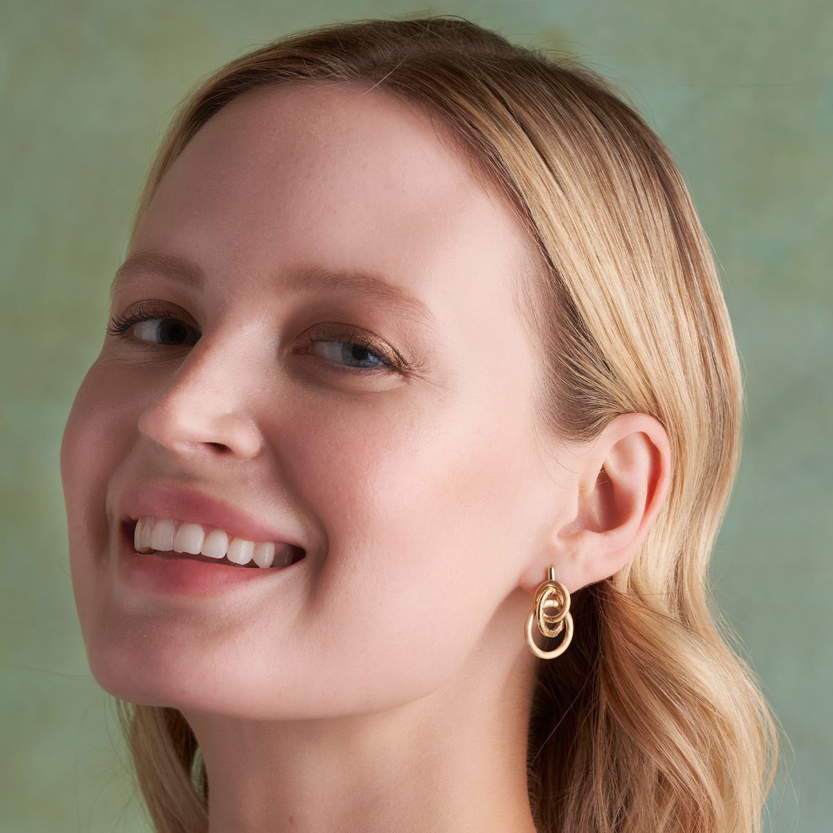 Symbolising connection and unity, these striking Olivia Burton earrings are formed from three interlinking circles. The gold finish has a textured feel inspired by hand-sculpted metals, and the central ring features the Olivia Burton signature Damask pattern.