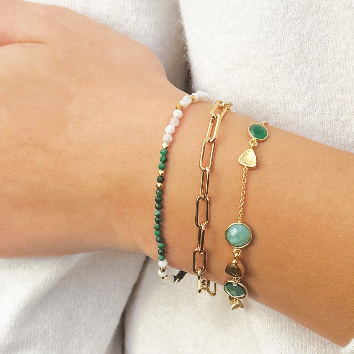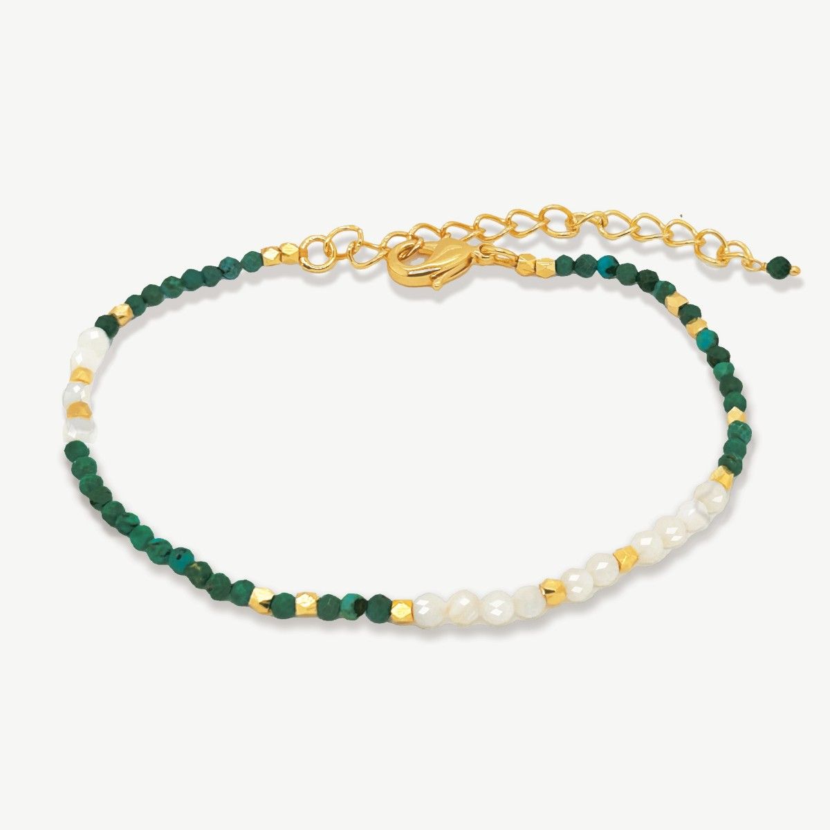 A beautiful, delicate addition to your jewellery box, this Sarah Alexander gemstone bracelet will add fresh styling all year round with trending tones of bold green, ivory and gold.