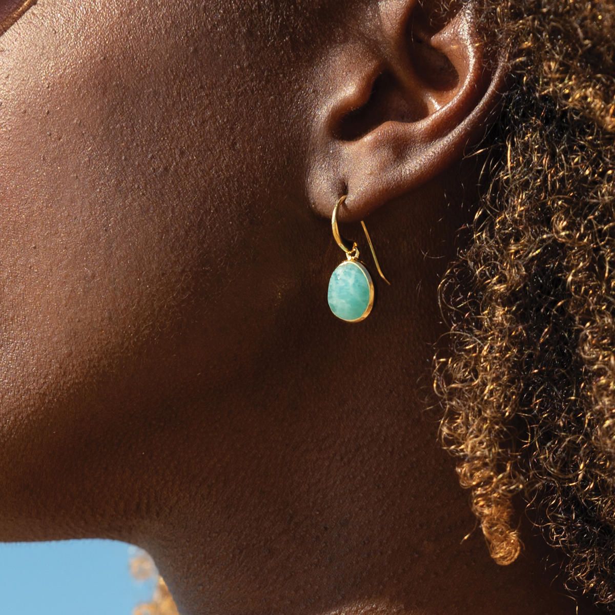Set with hand cut sparkling Amazonite in a subtle tone, these Sarah Alexander earrings are a must. Style solo or with your faves for looks you’ll wear again and again. Perfect for gifting.