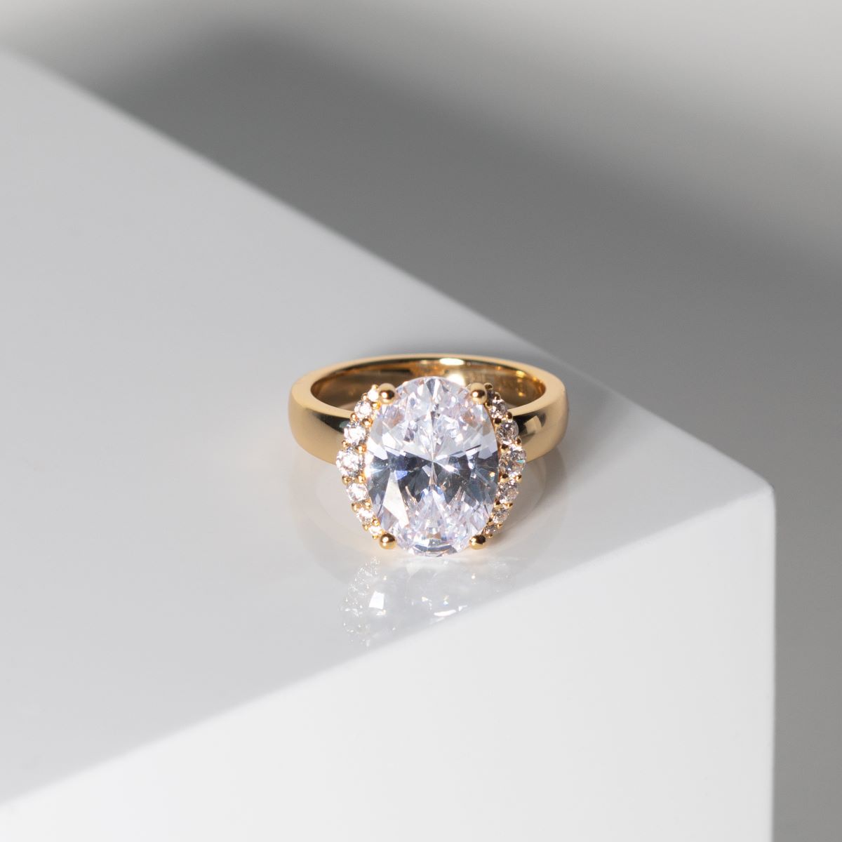 Add some glamour to your jewellery collection with this Sif Jakobs Ellisse Grande Ring. Made of 18 karat gold plated 925 Sterling Silver, polished surface, and handset with facet cut white zirconia.
