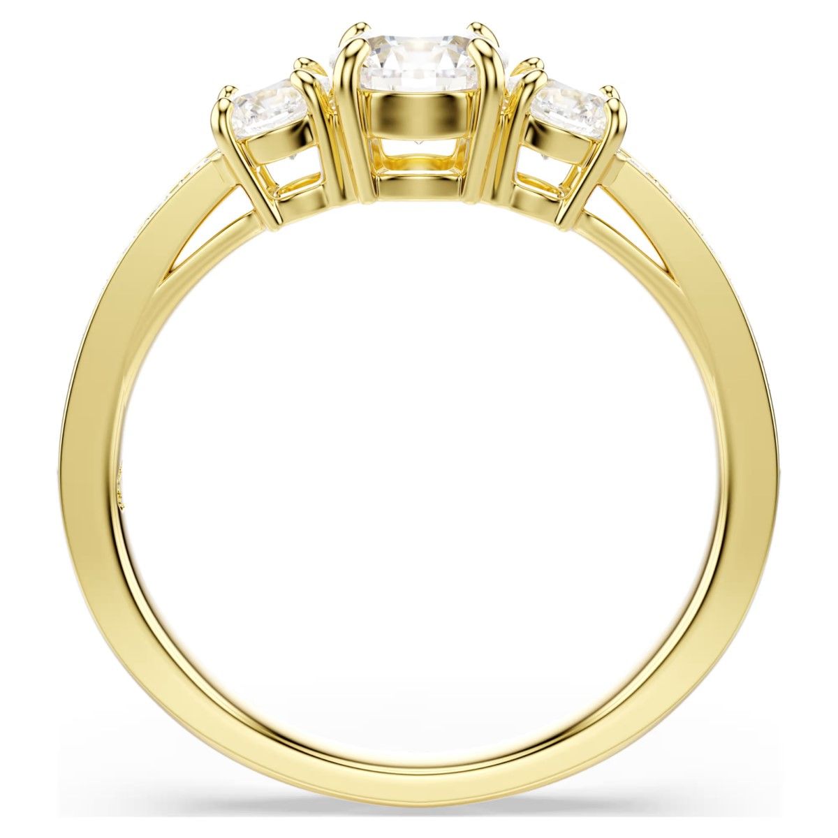 This classic Swarovski ring takes radiance to the next level with clear crystals along the shank and a trio of precision-cut Swarovski Zirconia on a shining gold-tone finish. A classic Swarovski crystal ring that will take you from day to night.