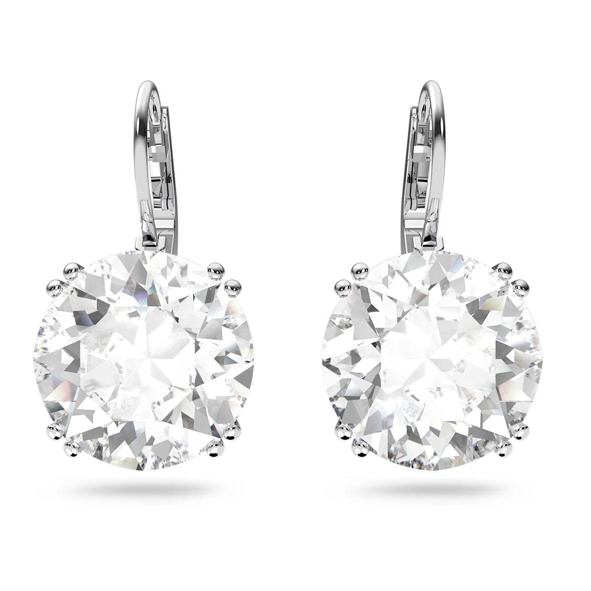 Featuring round cut crystals in dazzling white, this pair of Swarovski earrings is finished with a sleek rhodium plated setting. A timeless addition to your everyday style and perfect for day to evening wear.